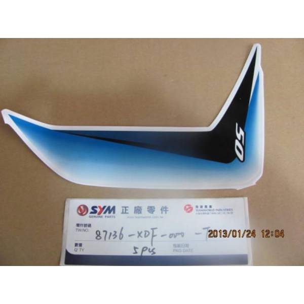 Description La pièce adhesif gauche 50 bleu référence 87136-XDF-000-T2 est une pièce d'origine du constructeur SYM et est exactement la même que celle montée à la sortie de l'usine du véhicule.