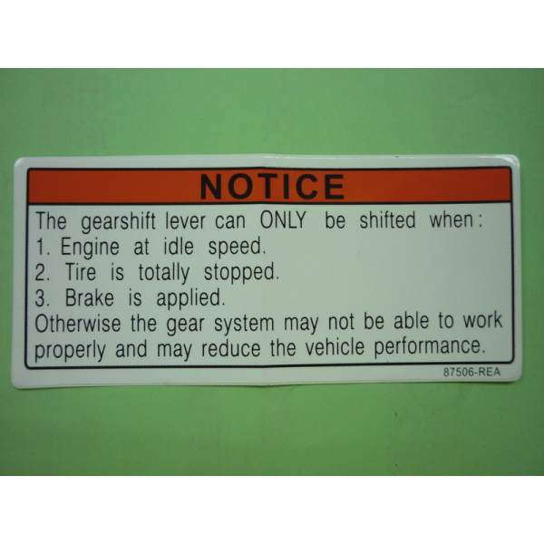 Description La pièce warning sign f référence 87506-REA-000 est une pièce d'origine du constructeur SYM et est exactement la même que celle montée à la sortie de l'usine du véhicule.