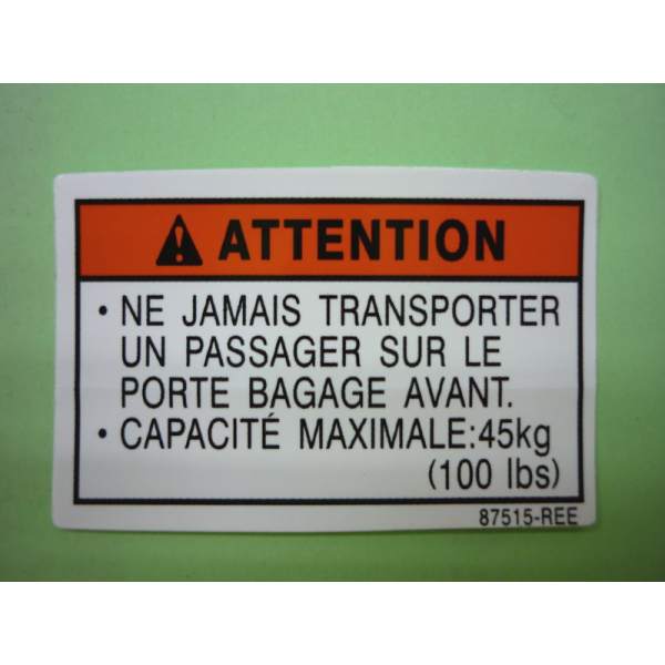 Description La pièce adhesif precautions porte bagages avant référence 87515-REE-000 est une pièce d'origine du constructeur SYM et est exactement la même que celle montée à la sortie de l'usine du véhicule.